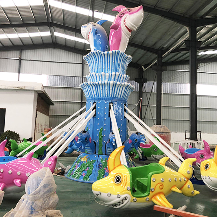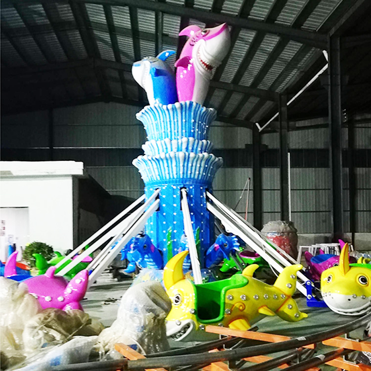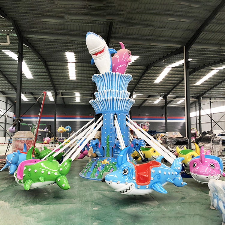 海洋元素自控飞机是一种以互动操控为核心、融合海洋主题造型的亲子类游乐设备。设备在整体旋转运行的同时,游客可自主控制座舱的升降高度,体验轻松有趣的“飞行”过程。其外观以海洋生物与蓝色系元素为设计重点,适合儿童乐园及主题游乐项目使用。