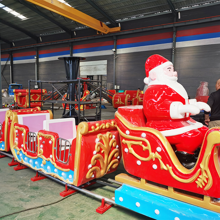 车体及座舱以圣诞元素为核心设计,色彩鲜明、造型卡通,融入节日特色装饰,如彩灯、雪花、圣诞树等,增强视觉吸引力。整体外观可根据园区风格或客户需求进行个性化定制,突出节日氛围和亲子趣味性。