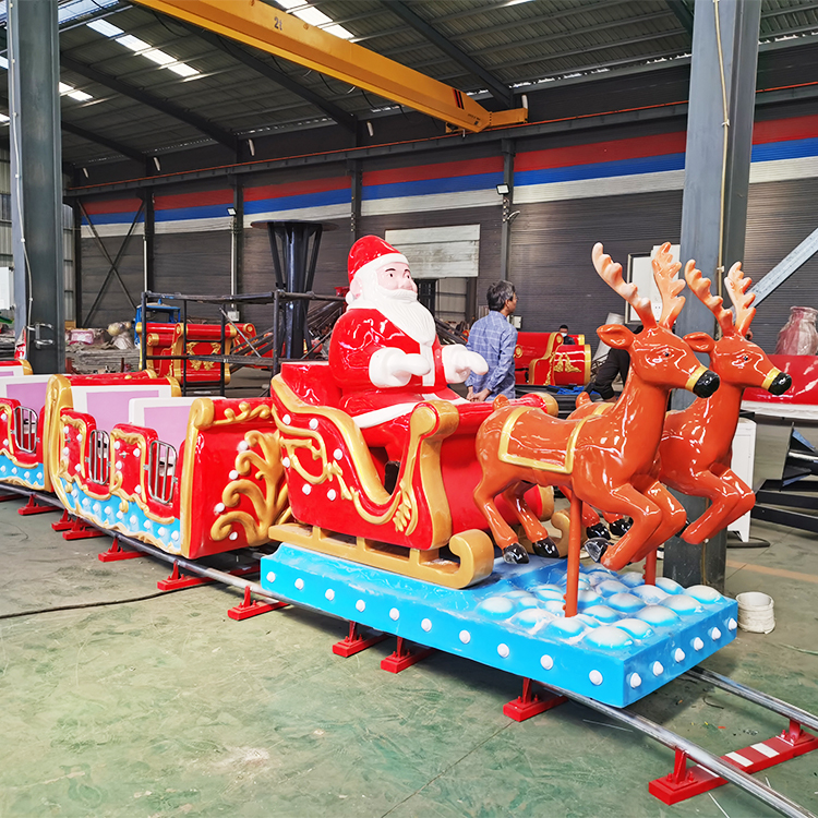 圣诞轨道小火车沿预设轨道行驶,由电力或齿轮驱动系统提供动力,确保车体平稳、安全移动。轨道设计可围绕儿童游乐区、主题区或商圈铺设,路线灵活可调,运行过程中低速行驶、停靠点可互动,适合儿童观看与参与。